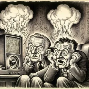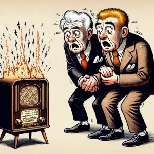 «Donald Trump and Joe Biden listening to a radio blasting out sma...»