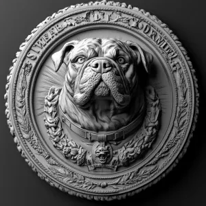 «Design a high-contrast grayscale 3d bas relief of marine bulldog...»