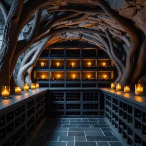 «A cool, subterranean chamber where twisted roots form vaulted ar...»