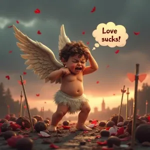 «Create an image depicting a sarcastic anti-Valentine's Day theme...»