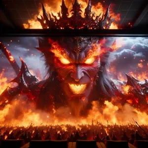 «brave souls! As the flames rise, the demon king awakens. His mol...»