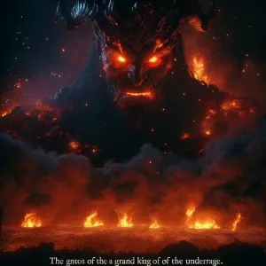 «As the flames rise, the demon king awakens. His molten stare bur...»