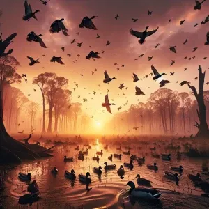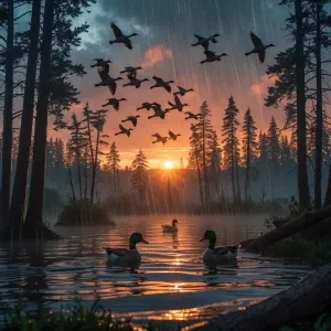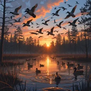 «as the sun rises and mallards are raining in, breaking through t...»