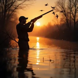 «shooting hour, as the sun rises and mallards are raining in, bre...»