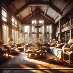 «A cozy living room filled with soft furniture, a plush rug, and...»