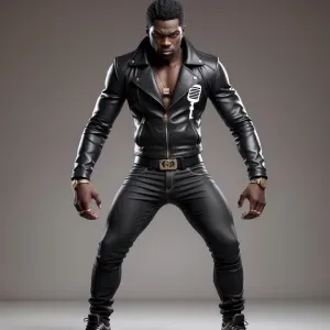 «Mic Master is a tall and lean Nigerian male figure, with a confi...»