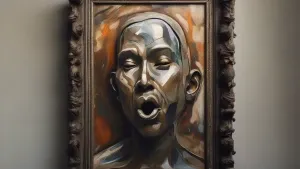 «Generate an image of a humanoid figure sculpted from clay, stand...»