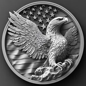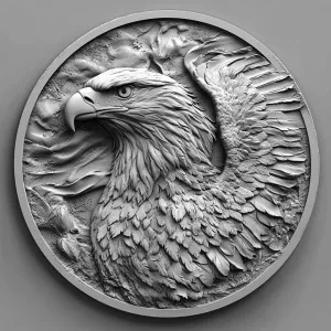 «Create a grayscale bas relief design featuring a majestic eagle...»