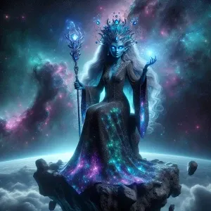 «Create an image of an alien witch with exceptionally lifelike de...»