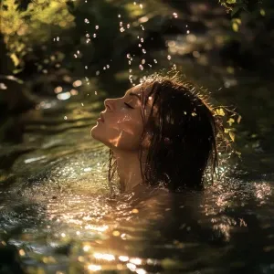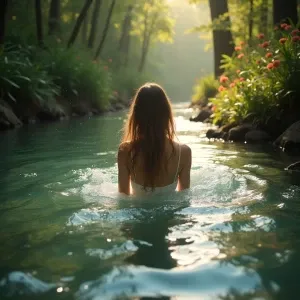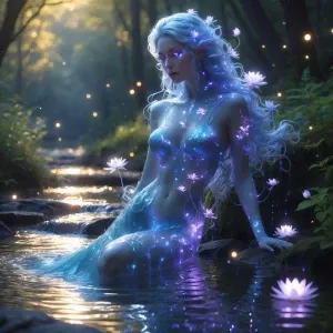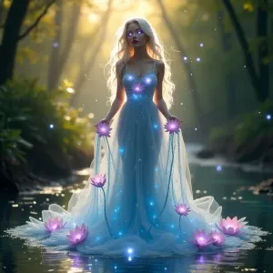 “A surreal scene featuring Dahlia as a flowing, ethere...»