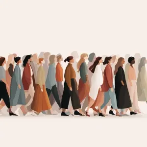 «Create an elegant and minimalist illustration featuring a crowd...»