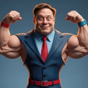 «Claymation-style wrestler version of Elon Musk with exaggerated...»