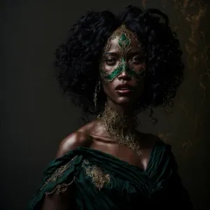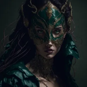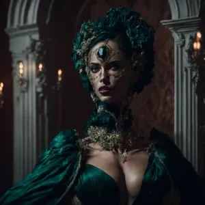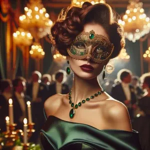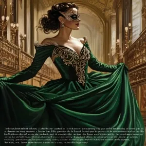 «"In the opulent ballroom, a masked beauty captures every gaze, h...»
