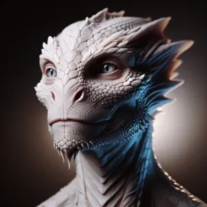 «A hyper-realistic close-up of a pale Dragon born character with...»