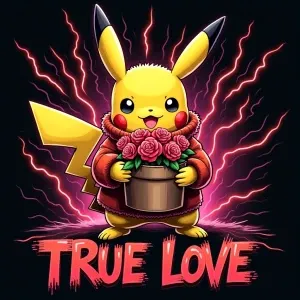 «A glossy and detailed illustration of Pikachu dressed in a fuzzy...»