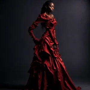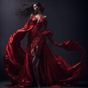 «Create a stunning artwork of a beautiful woman in a red dress, w...»
