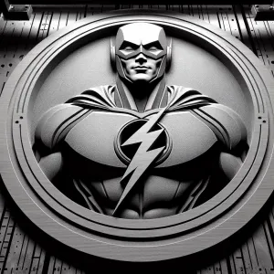 «a grayscale bas relief of shazam, on a round coin emblem with th...»