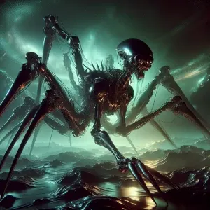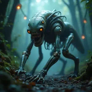 «"In the eerie glow of an alien world, a terrifying creature prow...»