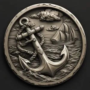 «a bas relief of a fouled anchor in front of a seascape with a Na...»