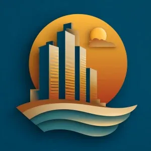«Create a square 1024x1024 3D logo: a beachfront condominium at s...»