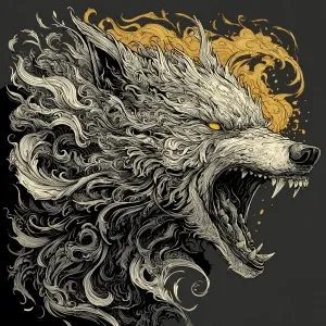 «A hyper-detailed vector illustration of a feral demonic beast wi...»
