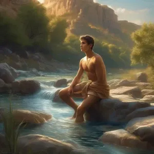 «A young Spartan Boy, with glistening skin, is bathing in a seren...»