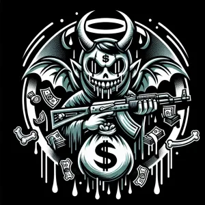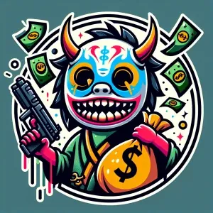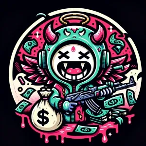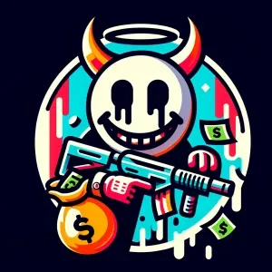 «Design a cartoon-style circular logo featuring a cheeky demon we...»