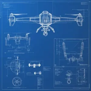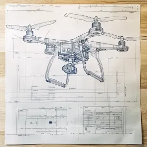 «A detailed specification sheet on blueprint paper for drone with...»