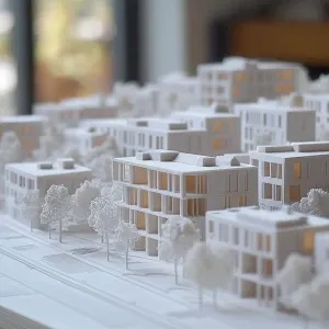 «3D printed scale model of a housing development»