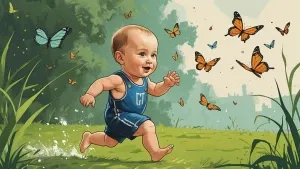 «baby Elon Musk runs on the grass and catches butterflies, the ch...»