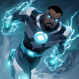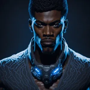«Generate an image of a muscular, Black man with short, dark hair...»