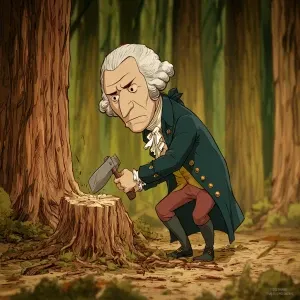 «George washington chopping down tree sayong "stupid tree" cartoo...»