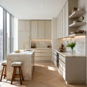 «Ultra-realistic photo of a modern luxury kitchen inside the same...»