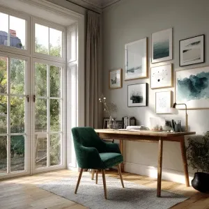 «Create a minimalist yet vibrant Scandinavian home office featuri...»