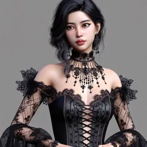 «a beautiful girl in Gothic dress, doll-like face, mysterious but...»