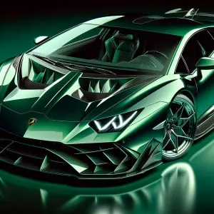 «Generate a 3D model of a green Lamborghini, featuring sleek, aer...»