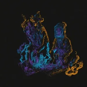 «Create a layered 2.5D art backdrop for a portrait, using depth e...»