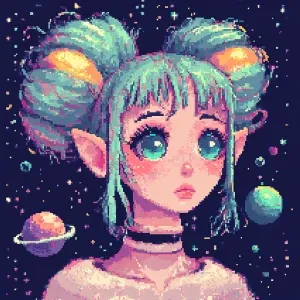 «Create a 16-bit pixel art image of an alien girl with cosmic-the...»