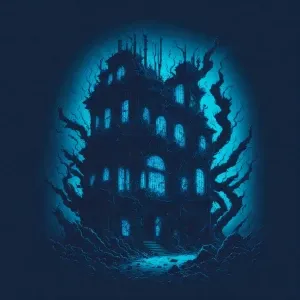 «A secluded gothic courtyard surrounded by ancient stone walls, w...»