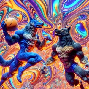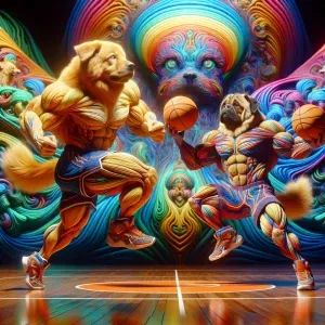 «Create an 8K resolution image of two muscular anthropomorphic do...»