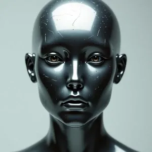 «A highly attractive caucasian woman with mercury blue metallic h...»