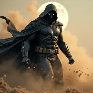 «Moon Knight dissolving into swirling sand, ultra-realistic, in t...»