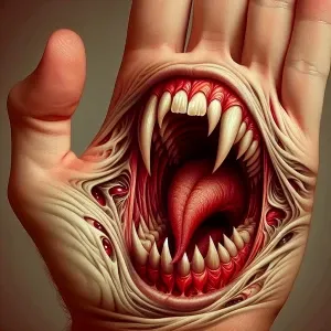 «she is a screaming mouth on the palm. Beautiful patterns made of...»