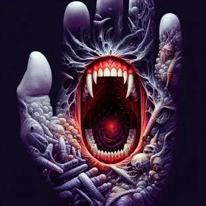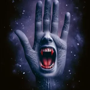 «she is a screaming mouth on the palm. Evil , crimson vampire tee...»