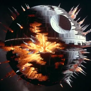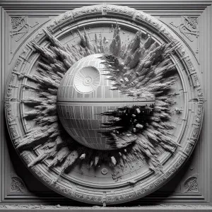 «Grayscale 3d bas relief of a Death Star exploding, round border»