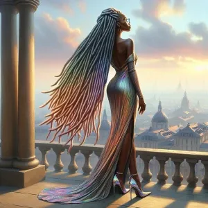 «Create a layered 2.5D art backdrop for a portrait, using depth e...»