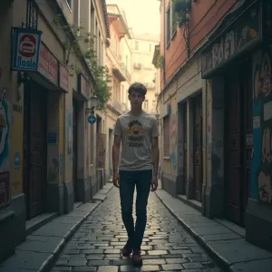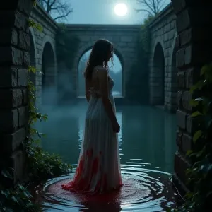 «A secluded gothic courtyard surrounded by ancient stone walls, w...»