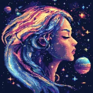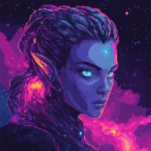 «Create a 16-bit pixel art image of an alien girl with cosmic-the...»