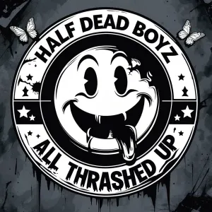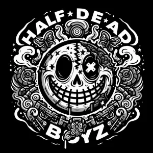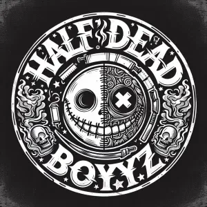 «Create a logo for a brand named "Half Dead Boyz" that features...»