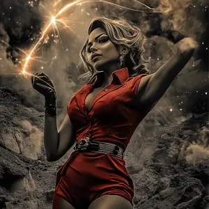 «A female extraterrestrial character wielding a cosmic whip compo...»